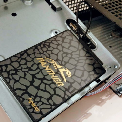 早速250GBのSSDを取り付けてみました。小さなネジ2本で換装完了。事務用PCならこの程度のストレージで十分です。