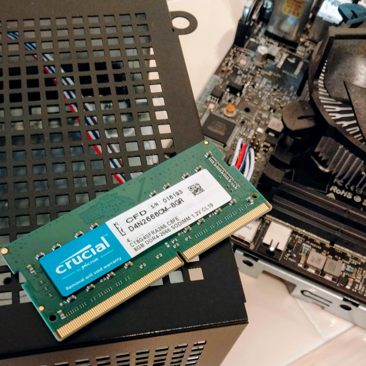 最後に8GBのメモリを挿して完了。8GBで十分だと思いますが、こちらはソケットがもう一つ余ってますので、更に8GB挿して16GBに増設できるのもいいですね。