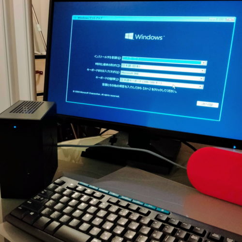 Windows10をインストールしてます。23インチモニター、キーボードとのサイズを比較してみてください。あとは、必要なアプリケーション(Office、メールアプリ、ブラウザアプリなど基本アプリ)をインストール・設定すれば、無事顧客先に嫁入りできます👰